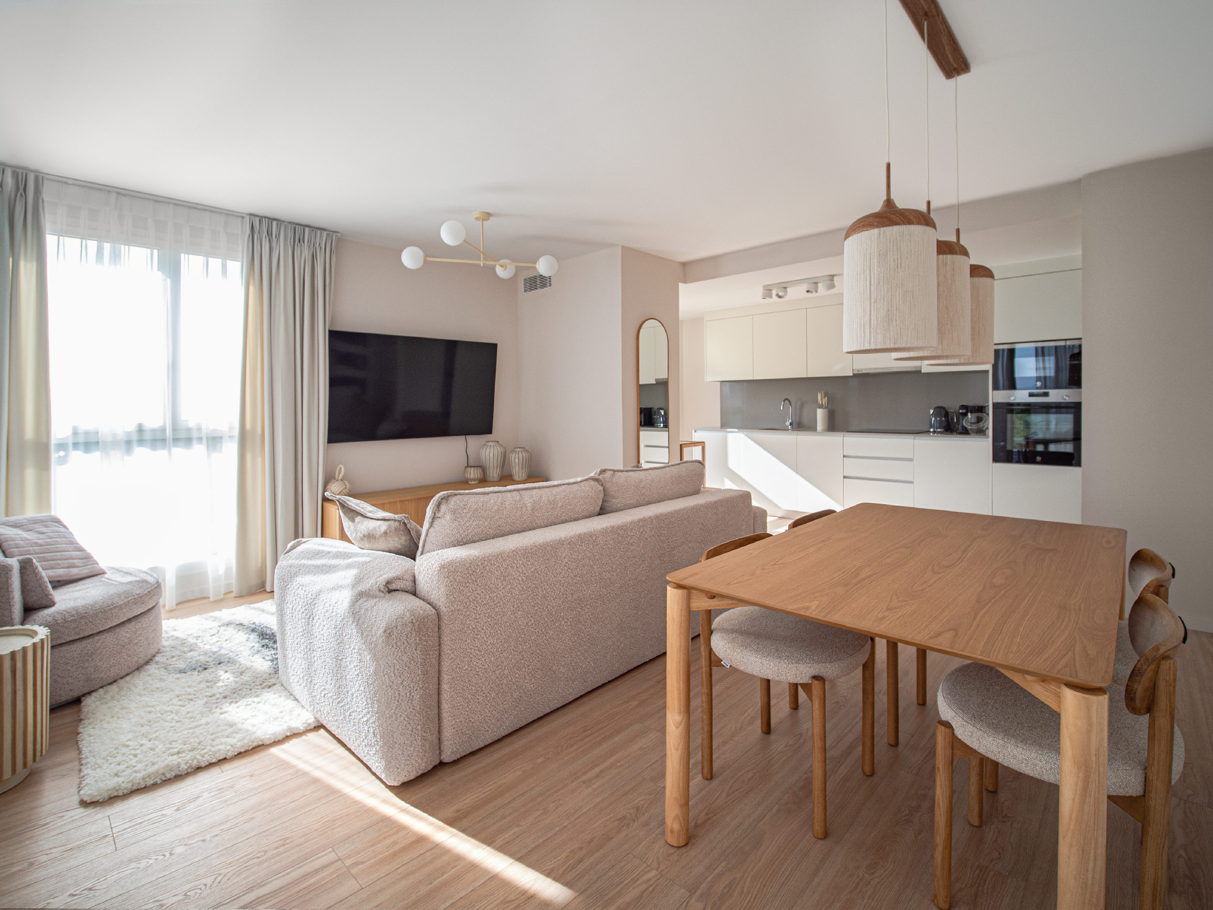 Apartament Wenus łączy nowoczesność z lekkością, tworząc przestrzeń idealną do wypoczynku. Jasne kolory, eleganckie meble i delikatne akcenty nadają mu harmonijny, przyjazny charakter.Pralnia300 € za noc -